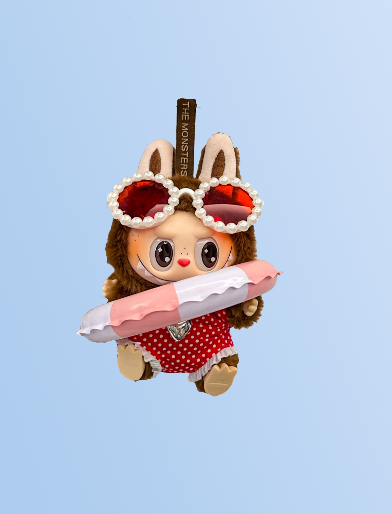 This retro-inspired red polka dot swim set brings playful charm to your Labubu's summer lineup.